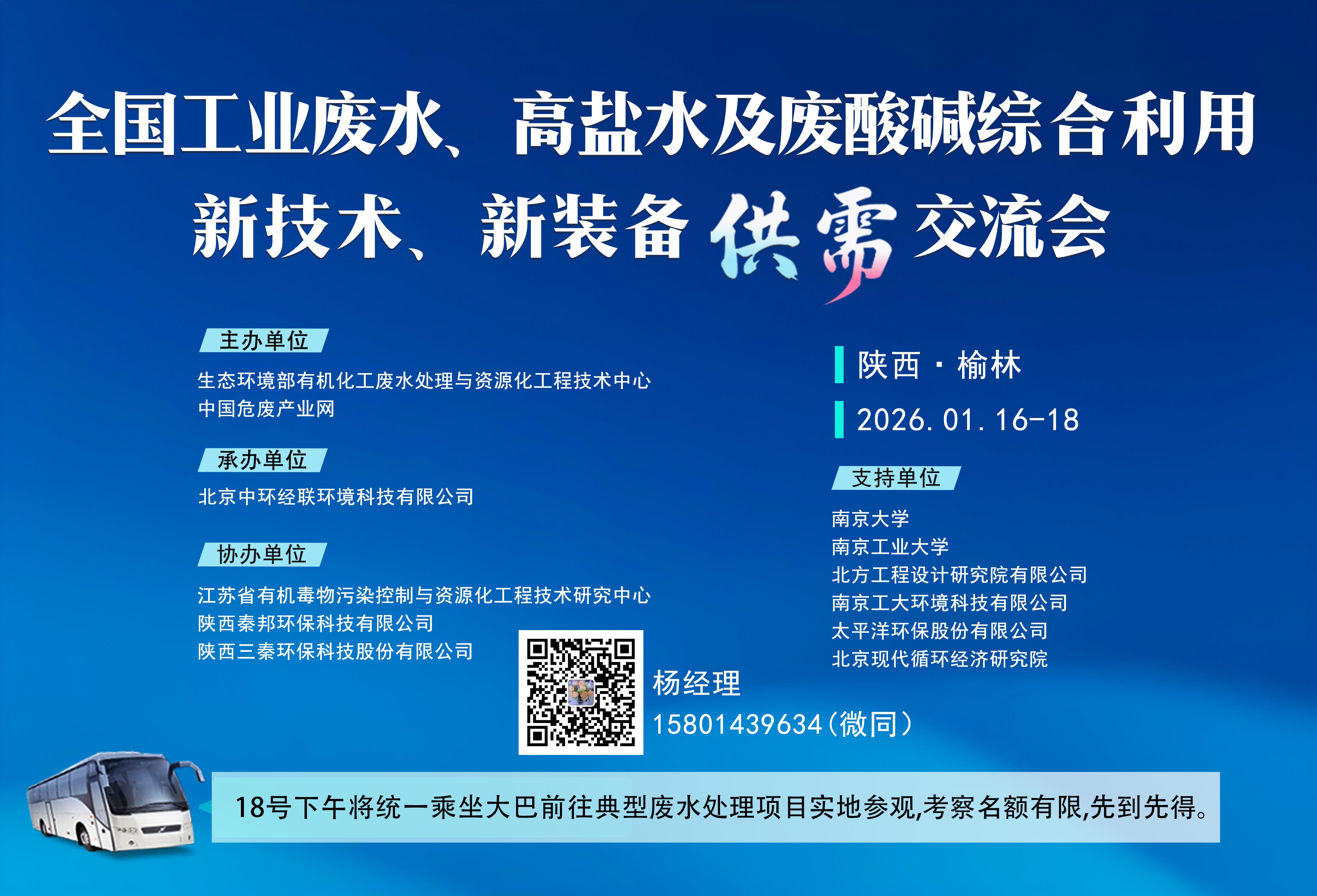 • 【1月·榆林】工業廢水、高鹽水及廢酸堿綜合利用新技術、新裝備供需交流會 重磅來襲!